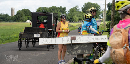 The Amishland and Lakes bicycle tour visits a world where lifestyles have remained almost unchanged for over a hundred years. The routes range from 22 to 100 miles, offering smooth, quiet roads, where buggies are numerous and cars are few. There are wide open spaces, clean country air, friendly people and lots of great food. There is plenty to explore, experience and eat. Amishland and Lakes is famous for great SAG food (watermelons, peaches, blueberries, bananas and fresh baked cookies), and there are Amish bakeries, restaurants and homemade ice cream parlors along the route for riders who want to sample local “home cooking.”